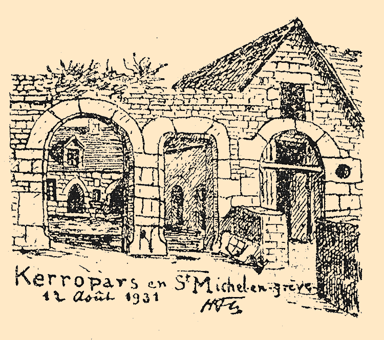 i Église de Trégastel. Dessin du vicomte Frotier de la Messelière. Date difficile à déchiffrer. Manoir des Noës, en Étables-sur-Mer. date non précisée |