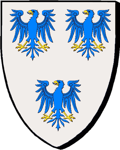 "D'argent à trois aiglons d'azur, membrés et becqués d'or" "En arc'hant e deir ererig en glazur, iziliet ha pigoset en aour" (PPC)