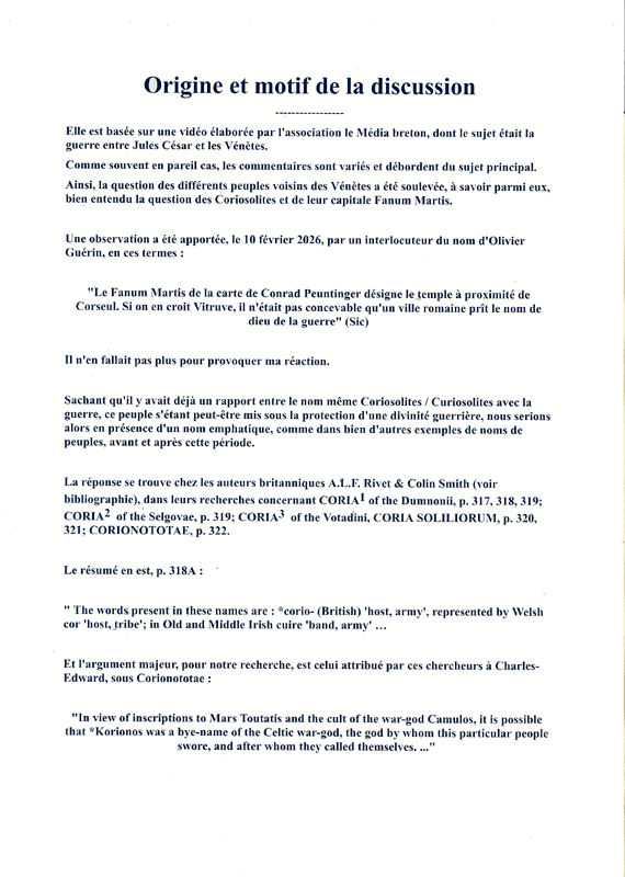 i AVERTISSEMENT ******* Les pages que vous allez lire proviennent d'une plaquette de recherche historique, de 9 (neuf) feuilles A4 imprimées seulement au recto, qui a été déposée le mercredi 18 février 2026, à 9h30, en l'étude de Me Alain Le Monier, notaire à La Roche-Jaudy (22450). Un exemplaire est conservé à l'Étude. Un autre exemplaire, signé et revêtu du timbre de l'Étude notariale, est en ma possession, avec attestation de dépôt, afin de préserver ma paternité de cette recherche historique. Quiconque en fera des extraits dans des publications, quelles qu'elles soient, sera tenu d'en citer la provenance. Jean-Claude Even |
