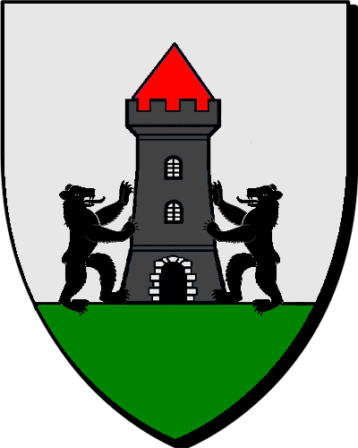Seigneurs de Sulé, en Surzur; du Quillio, en Guern. "d'or au château de sable, au bâton d'argent brochant" / "en aour e c'hastell en sabel, e sourinan en arc'hant balirant" références et montres de 1427 à 1536. |