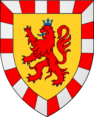 COURSON, sr de Liffiac, de Liscineuc, de Kerléau, des Fontaines et de la Villeneuve, par. de Plélo; de Colomeur; de Kernescop, de Kerdaniel, de Costang, de Kersalic, de Kertanguy, de Portzandré, de Kerlevénez, du Bilo, du Mogueret de la Belleissue, par. de Plouha; de Grand-Pré, de la Ville-Hélio, par. de Plourhan; de l'Isle, de Hauteville, par. de Hénon; de la Villevalio, de la Ville-Costiau, par. de Trémeloir; du Val, du Guern, par. de Kernével; de Melchonec, par. de Plouaret; de Lessac, par. de Guérande; de la Villeneuve, par. de Saint-Gilles-le-Vicomte; du Vauhardy, par. de Trédaniel. Anc. ext., réf. 1668, six gén., et maint, à l'intendance en 1702; réf. et montres de 1423 à 1569, par. de Plélo et Plouha, évêché de Saint-Brieuc. "D'or à trois chouettes de sable, membrées et becquées de gueules" "En aour e deir c'haouenn en sabel, iziliet ha pigoset en gwad" - Robert, croisé en 1248 (cab. Courtois); - Jean, prête serment au duc entre les nobles de Goëllo en 1437; - Jean, sr de Liffiac et de Liscineuc, vivant en 1469, épouse Margilie Henry; - François, sr de Kernescop, chef d'une autre branche, vivant en 1513, épouse Françoise Taillard; - un maréchal de camp en 1819; décédé en 1847; - une chanoinesse de Saint-Antoine de Viennois en 1789; - un lieutenant de vaisseau fusillé à Quiberon en 1795; - un général de division en 1873, décédé en 1879; - un général de brigade en 1863. Une branche établie en Angleterre, porte : "d`argent à la bande de sable, chargée de trois chouettes d'or" "en arc'hant e sourin e sabel, karget gant teir c'haouenn en aour" devise / sturienn : Laissez Courson tenir ce que Courson a pris. Cette branche a produit : - Robert, cardinal du titre de Saint-Étienne et légat du Saint-Siège, auquel on doit les statuts de l'université de Paris en 1215; - Girard, l'un des envoyés du duc de Bedfort en France, pour la ratification du traité de Troyes en 1427. |
