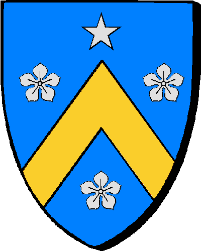 "d'azur à une étoile d'argent; au chef d'or chargé d'une croisette pattée de gueules" "en glazur e steredenn en aour; e gab en aour karget gant ur groaz pavek en gwad" - Charles, sénéchal de Vannes, conseiller aux Grands-Jours en 1525, puis au Parlement de Bretagne en 1554, puis président à mortier au Parlement de Bretagne en 1558 |