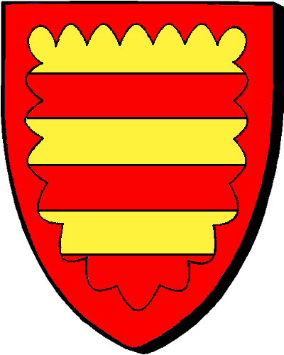 KERALDANET (de), Seigneurs dudit lieu et du Rascol en Lannilis; de Kerjean en Plouvien; du Rouazle en Dirinon; de Kerbloc'hou et Lestremeur en Bodivit (auj. Plomelin); de Lanros en Ergué-Armel; de Kervern et Kerouzern en Brasparts. "de gueules, au chef endenché d'or de cinq pièces" / "en gwad, e gab dentek en aour a bemp pezh" - Hervé, entendu dans l'enquête pour la canonisation de Charles de Blois en 1371. Fondu dans ACIGNE. Les seigneurs de Kervern et de Kerouzern, paroisse de Braspartz, déboutés à la réformation de 1670. |