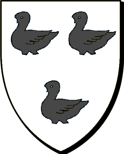 bretonne de J.-C. Even. LANDELLE (de la), seigneurs dudit lieu, par. de Guer; de la Graé, par. de Peillac; de la Villeslouet; de Roscanvec et de Talhouët, par. de Saint-Nolf; de Couësnongle, par. de Saint-Jacut; des Maretz; des Tertrées, par. de Lanouée; de Lohan, par. de Plaudren; du Pin, de la Roberdière et du Temple, par. de Saint-Mesme; de Lantillac, par. de ce nom; de Tréal; de la Chesnaye-Aribart, par. de Gaël. Anc. ext. chev., réf.1669, onze gén; réf. et montres de 1426 à 1536, par. de Guer, év. de Saint-Malo, Peillac et Plaudren, év. de Vannes. "D’argent à trois merlettes de sable" / En arc'hant e deir voualc'henn en sabel" - Guillaume, chevalier de Saint-Jean-de-Jérusalem, fait un accord avec Ies moines de Saint-Aubin-des-Bois en 1187; - Robert, croisé en 1248 (cab. Courtois), épouse Perrone d'Anast, dont : - Guillaume, marié à Margot de Porcaro, père et mère de - Jean, marié en 1398 à Marie de Châteaudérech. De ce mariage: -- 1° Jean, secrétaire du duc et premier huissier de sa chambre en 1432, qui a continué la filiation; -- 2° Martin, chevalier du Porc-Épic, en 1440; -- 3° Vincent, écuyer du duc, capitaine de Suscinio, -- 4° Guillaume, abbé des Prières, auditeur en la Chambre des Comptes de Bretagne en 1439.
