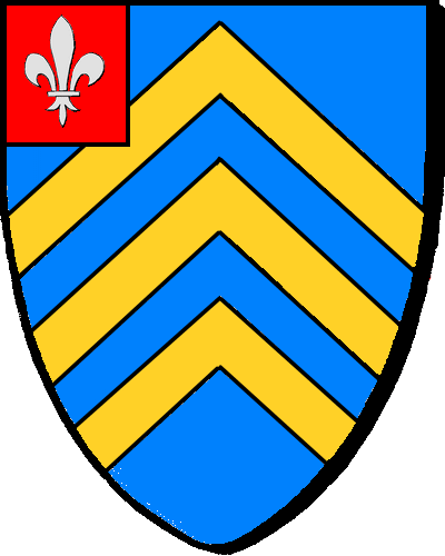 Famille de Neufville : originaires de Paris; seigneurs des Tuileries; ducs de Villeroy; marquis d'Alincourt; ducs de Retz. "d'azur au chevron d'or, accompagné de trois croisettes de même" / "en glazur e gebrenn en aour, heuliet gant teir groaz eoriek ivez en aour". (PPC) |