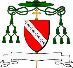 Famille de Saint-Germain : "de gueules, au chevron d'argent, accompagné de trois besants de même / en gul, e gebrenn en arc'hant, heuliet gant tri bezantenn ivez en arc'hant" |