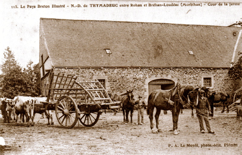 | Histoire / Istor : * Ogée (1780) : Bréhand-Loudéac; dans un fond, entre les rivières d'Oust et de Lié; à 11 lieues 1/4 au sud de Saint-Brieuc, son évêché; à 15 lieues 5/4 de Rennes, et à 3 lieues de Josselin, sa subdélégation. Cette paroisse ressortit à Ploërmel. On y compte 3000 communiants. La cure est à l'alternative. M. le duc de Rohan en est seigneur. Ce territoire, arrosé des rivières d'Oust et du Liés, et coupé d'une infinité de ruisseaux, renferme beaucoup de prairies. Les terres labourables sont fertiles en grains de toute espèce; les landes y sont en grand nombre. L'an 1080, la seigneurie de Bréhand-Loudéac appartenait à Bréhand-Levieux; la maison de Bréhand, comte de Plélo et autres lieux, tire son nom de cette terre. Elle a haute, moyenne et basse-justice. En 1520, le manoir de la Touche et celui de la Ville-Morvan appartenaient à Alain Aguesse, et celui de Marn à Olivier de Barlagat. * Marteville et Varin (1843) : BREHAND-LOUDEAC,