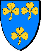 "d'azur à la fasce d'or, accompagnée de trois croix pattés de même" "en glazur e dreustell en aour, heuliet gant teir kroaz ivez en aour" (PPC) |