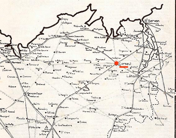 Extrait de la carte établie par le Vte FROTIER de la MESSELIERE, Société d'Émulation des Côtes du Nord, en 1933. |