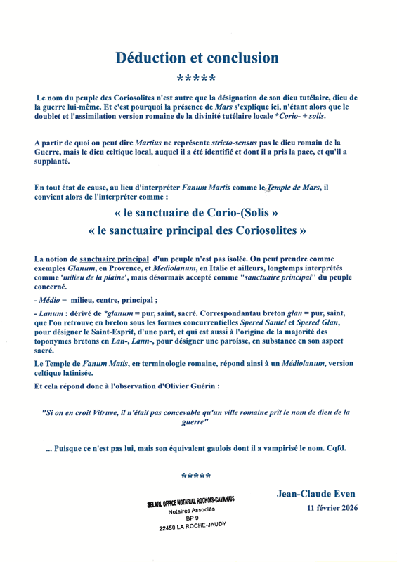 i AVERTISSEMENT ******* Les pages que vous allez lire proviennent d'une plaquette de recherche historique, de 9 (neuf) feuilles A4 imprimées seulement au recto, qui a été déposée le mercredi 18 février 2026, à 9h30, en l'étude de Me Alain Le Monier, notaire à La Roche-Jaudy (22450). Un exemplaire est conservé à l'Étude. Un autre exemplaire, signé et revêtu du timbre de l'Étude notariale, est en ma possession, avec attestation de dépôt, afin de préserver ma paternité de cette recherche historique. Quiconque en fera des extraits dans des publications, quelles qu'elles soient, sera tenu d'en citer la provenance. Jean-Claude Even |