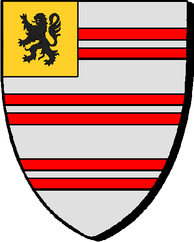 Brasparts. "d'argent à trois jumelles de gueules; au canton d'or chargé d'un lion de sable" "en arc'hant e deir eilenn en gwad; e c'hrenngonk en aour karget gant ul leon en sabel" références et montres de 1426 à 1536 (PPC) |