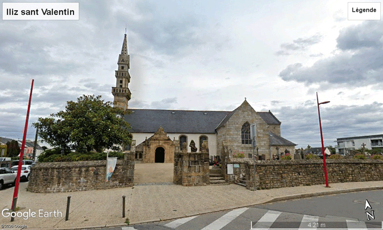 Paroisse / Parrez : l'église est sous le vocable de saint Valentin. |