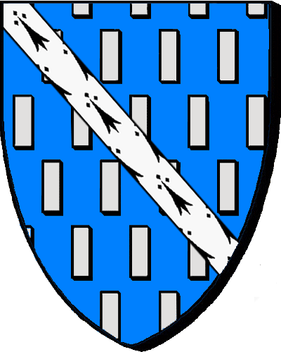 "d'azur semé de billettes d'argent, à la cotice d'hermines" "en glazur hadet gant kanochennoù en arc'hant, e c'housourin en erminoù" (PPC) |