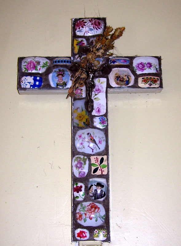Croix domestiques en ciment revêtu d'éclats de faïence. Collection privée. Reproduction réservée.