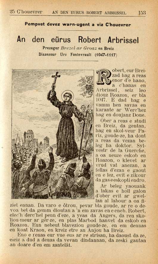 Robert, eur Breizad hag a reas enor d'e hano, a c'hanas en Arbrissel, seiz leo diouz Roazon, er bla 1047. E dad hag e vamm hen savas en karante ar