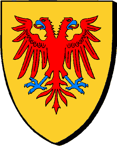 "d'or à l'aigle à deux têtes de gueules becquée et membrée d'azur" / "en aour e erez daoubennek en gwad pigosek hag iziliek en glazur" - Paul s'établit en Bretagne où il épousa Marie Bizien, dame de Kerigomarc'h; - un chevalier de Malte en 1663 - Un abbé de Bellefontaine au diocèse de la Rochelle en 1754 (PPC) |