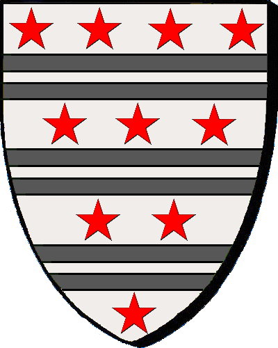 Seigneurs de l'Hôtellerie en Ploufragan; de la Ville-Angevin en Pordic; de Bélestre en Saint-Alban; du Closmenier en Coëtmieux. "d'argent à trois jumelles de sable, accompagnées de dix étoiles de gueules, 4, 3, 2, 1" / "en arc'hant e deir eilenn en sabel, heuliet gant dek steredenn en gwad, 4, 3, 2, 1". sceau 1381- siell 1381 [GLB] [PPC] Perrot ratifie le traité de Guérande en 1381. |