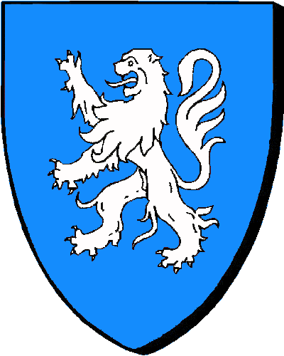 "d'azur au lion d'argent" / "en glazur e leon en arc'hant" Cette famille qui a produit trois auditeurs à la Cour des Comptes de Bretagne, à Nantes, de 1571 à 1606, s'est fondue en 1653 dans La Roche-Saint-André. |