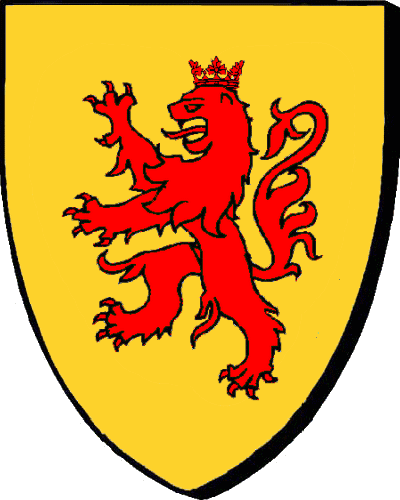 "d'argent au lion de sable, armé et lampassé de gueules" / "en arc'hant e leon en sabel, krabanet ha teodet en gwad". 1427; 1547; 1568; 1581. (PPC) |