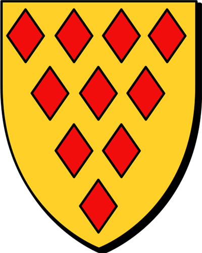 Seigneurs de la Commerière, par. de Ploubalay; --- de Meurtel, par. de Saint-Potan; --- de la Villeneuve, --- de la Villemorin, par. de Plorec, --- de la Trochardais, --- de Lannoual, --- de la Villeglé, --- de la Villeguériff Anc. ext., réf. 1668, six gén.; réf. et montres de 1428 à 1513, par. de Ploubalay, Corseul, Plorec et Trégon, év. de Saint-Malo, et Saint-Potan, év. de Saint-Brieuc. "d'argent à quatre fusées rangées et accolées de gueules" / "en arc'hant e feder gwerzidenn renkek ha kenstag en gwad" - Gautier, chevalier, seigneur de la Ville-Gestin, paroisse de Dolo, mentionné dans une charte de Saint-Aubin-des-Bois en 1210; - Jean, seigneur de la Commerière, grand maître de l'artillerie de Bretagne en 1459. - Jean, vivant en 1513, épouse Guillemette du Fournet |