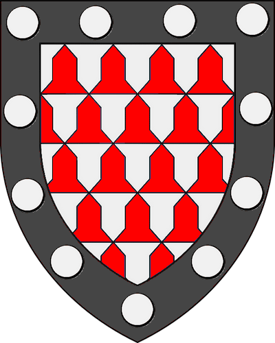"vairé d'argent et de gueules, à la bordure de sable besantée d'argent / brizhet etre arc'hant ha gwad, e vevenn en sabel bezantet en arc'hant" Selon Guy Le Borgne : Adam Goazhamon, Kermalhuezan |