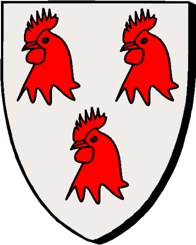 "d'argent à trois têtes de chapon (= coq) arrachées de gueules" / "en arc'hant e dri fenn kilhog (pe kabon) diframmet en gwad (= en gul). 1696. (PPC) - Des syndics, procureurs et notaires à Lesneven. - Un capitaine au régiment de Berry, fusillé à Quiberon en 1795 |