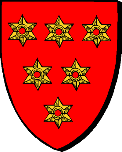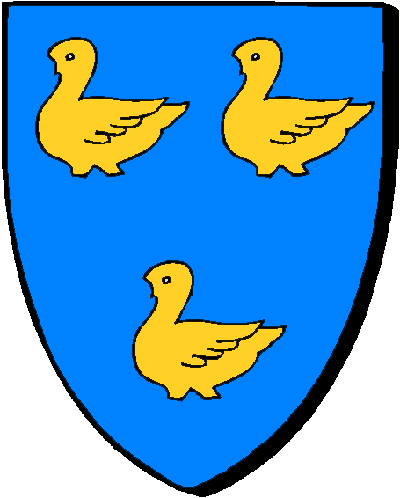 "d'azur au chevron d'or, accompagné de trois pommes de pin de même" "en glazur e gebrenn en aour, heuliet gant teir aval-pin ivez en aour" - François, président aux Grands-Jours de Bretagne en 1538, puis président à mortier au Parlement de Bretagne en 1554 - René, président à mortier au Parlement de Bretagne en 1556 - Pierre, conseiller au Parlement de Bretagne en 1565 - René, (le même ?) président à mortier au Parlement de Bretagne en 1570 Une branche fondue en 1697 dans Contades; une autre branche transplantée dans l'Orléanais, y maintenue en 1668 |