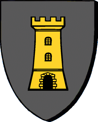 "de sable à la tour d'or" / "en sabel, e dour en aour"