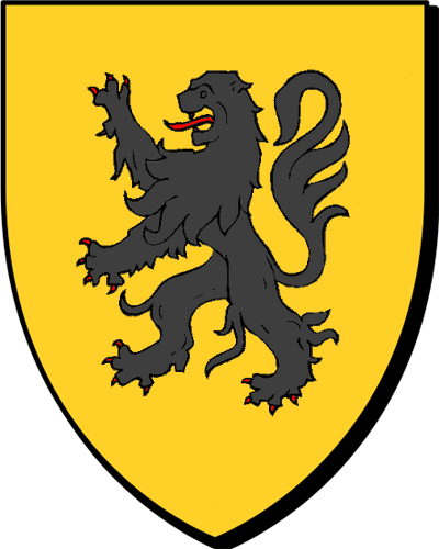 "d'azur au lion d'or accompagné d'étoiles de même sans nombre" "en glazur e leon en aour, heuliet gant stered ivez en aour diniver" - Thibault, bourgeois d'Orléans, maire de Sully et receveur des marchands de la Loire; - Louis, Conseiller au Parlement de Bretagne en 1557. |