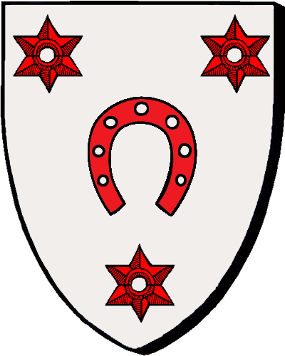 Originaire du Maine. Seigneurs de Chazay. "d'azur à la fasce d'or, accompagnée de trois étoiles de même" "en glazur e dreustell en aour, heuliet gant teir steredenn ivez en aour" - Pierre, président aux Enquêtes et conseiller au Parlement de Bretagne en 1596; décédé en 1616., épouse Aimé-Marie Eveillard. Le seigneur de la Fontaine, paroisse de Plésidy, débouté à la réformation de 1670. |