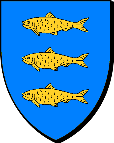 "d'azur à la fasce d'or, accompagnée de trois canettes d'argent" "en glazur e dreustell en aour, heuliet gant teir houadan en arc'hant" - Zacharie, receveur des traites foraines d'Anjou, père de - Louis, conseiller au Parlement de Bretagne en 1633. |