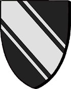 famille Quatrebarbe : "de sable à la bande d'argent cotoyée de deux filets de même". |