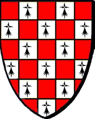 Anc. ext. chev. réf. 1669. quatre gén.; réf. de 1429 à 1513, par. de Saffré, le Clion, Couëron, Sucé, Chauvé et Ligné, év. de Nantes . "d''azur à trois croisettes fleurdelysées d'or; au chef de même" "en glazur e deir groazig flourdilizek en aour; e gab ivez en aour". (Sceau / Siell 1395) - Foulques, vivant en 1300; - Alain, chevalier-bachelier dans une montre de 1370, marié à Philipotte de Laval; - Guillaume, maître de la vènerie en 1492; - Pierre, vivant en 1513, père de François, marié à Marie Trimorel. La branche aînée fondue en 1416 dans TOURNEMINE. (PPC) |