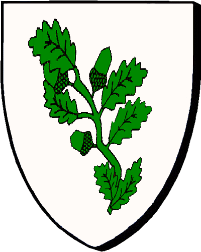 TROUILLET, Seigneurs de la Bertière; de l'Echasserie. "D'argent au rameau de chêne en pal, chargé de trois glands, le tout de sinople" "En arc'hant e bodig derv peuliet, karget gant teir vezenn, an holl c'heotet" Quatre conseillers depuis 1704. - Nicolas-René, seigneur de la Bertière, conseiller au Parlement de Bretagne en 1704. |